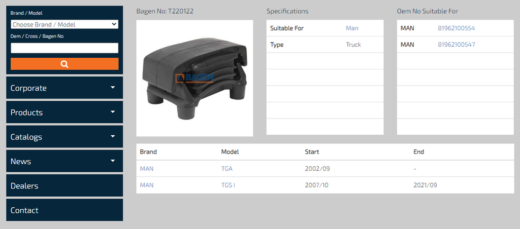 Suitable For : Man Medicine : Heavy Vehicle Inner Diameter (mm.) : 147 Outer Diameter (mm.) : 264 Height (mm.) : 124 Part Number : T220122 - 81962100554 - 81962100547 - 020.186